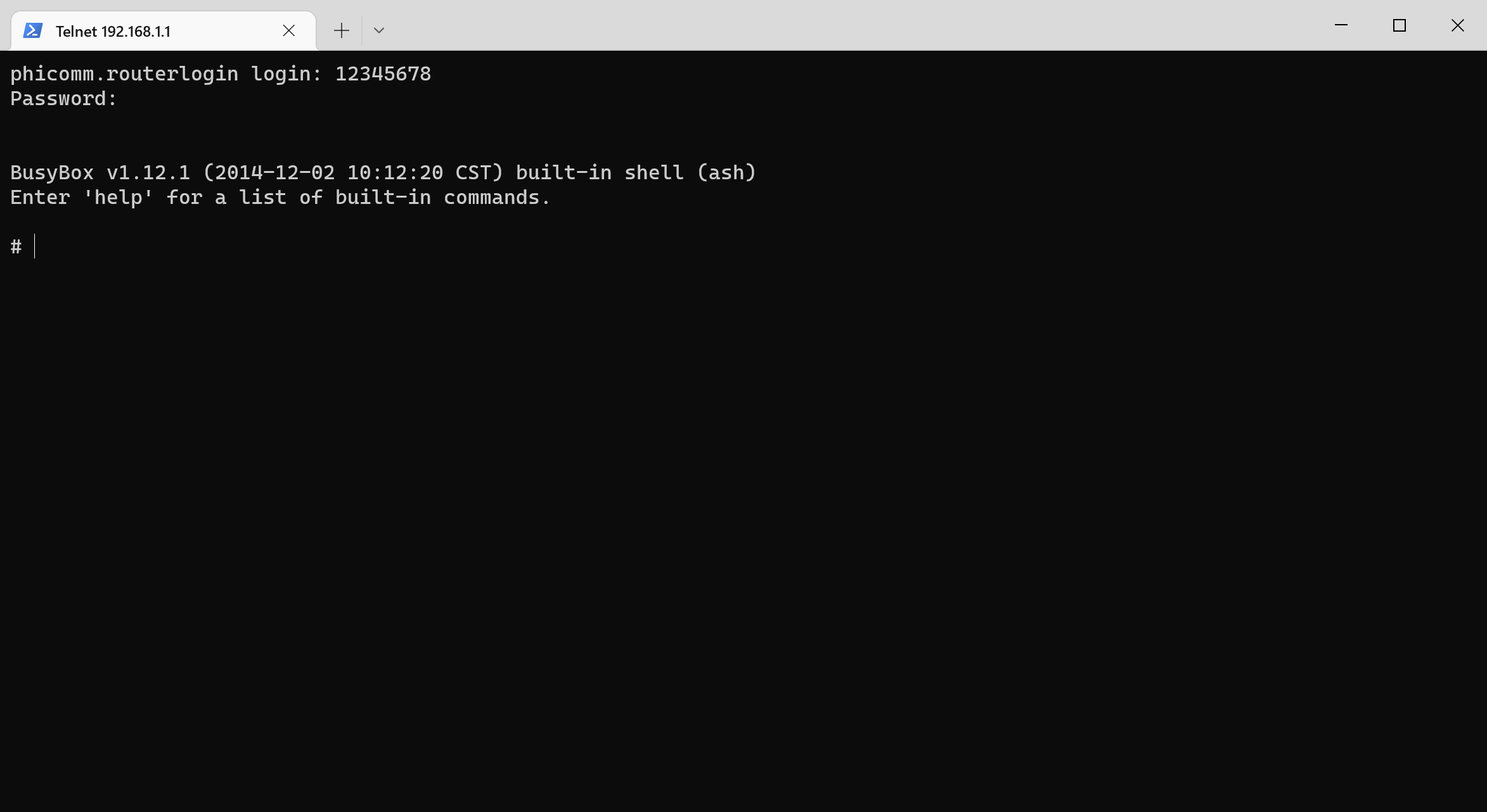 设置管理员密码和用户名为12345678,这个是为后面telnet登录准备的