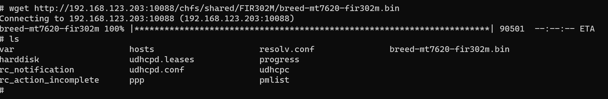 wget http://192.168.123.203:10088/chfs/shared/FIR302M/breed-mt7620-fir302m.bin