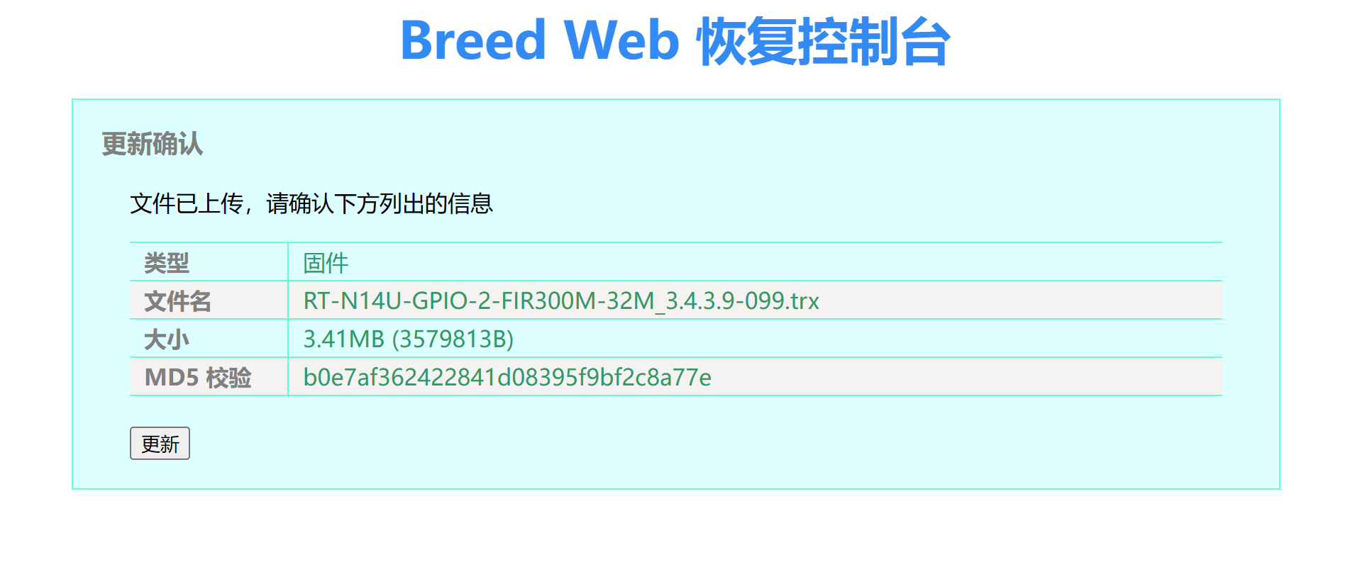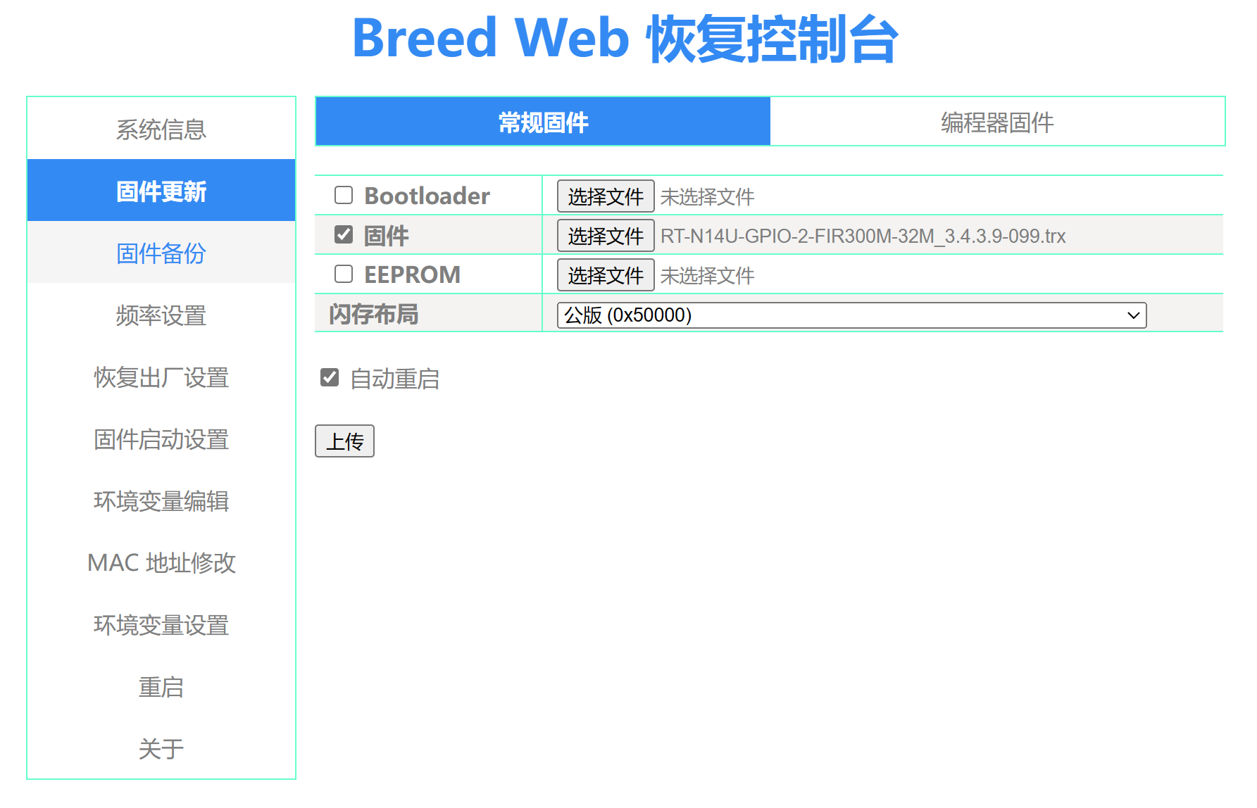 breed下载地址:https://breed.hackpascal.net/breed-mt7620-fir302m.bin